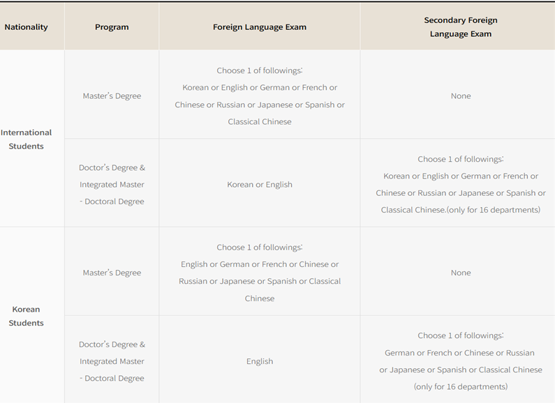 - Upon completing the course with a grade of B or higher (based on the Graduate School of General Studies standard) will be considered equivalent to passing the foreign language exam.