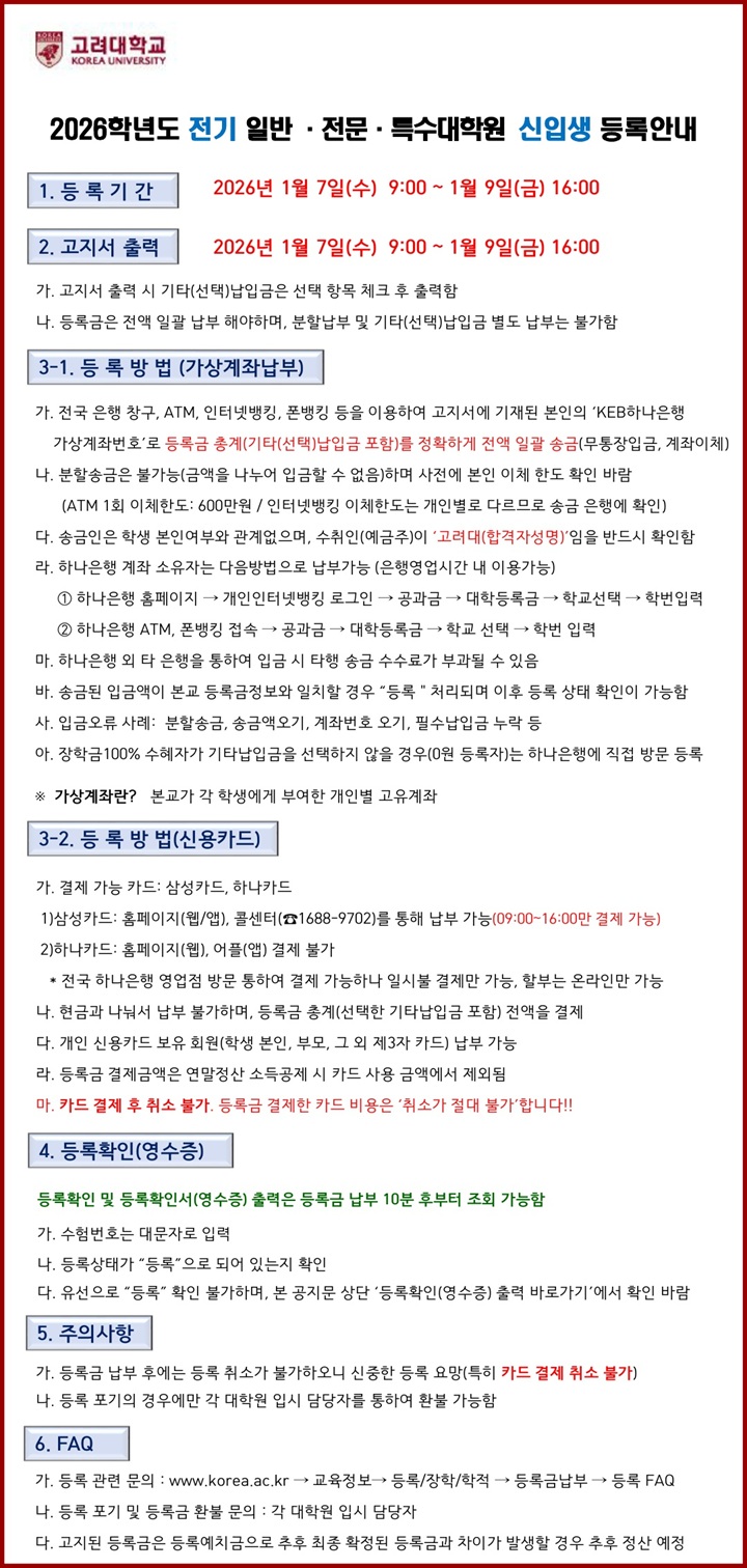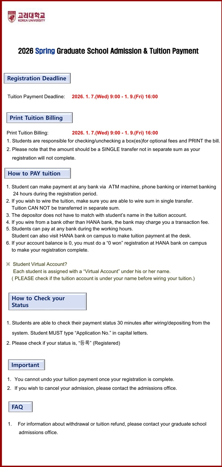 ※ 등록포기는 일반대학원 대학원행정팀으로 문의바랍니다.(02-3290-1356)