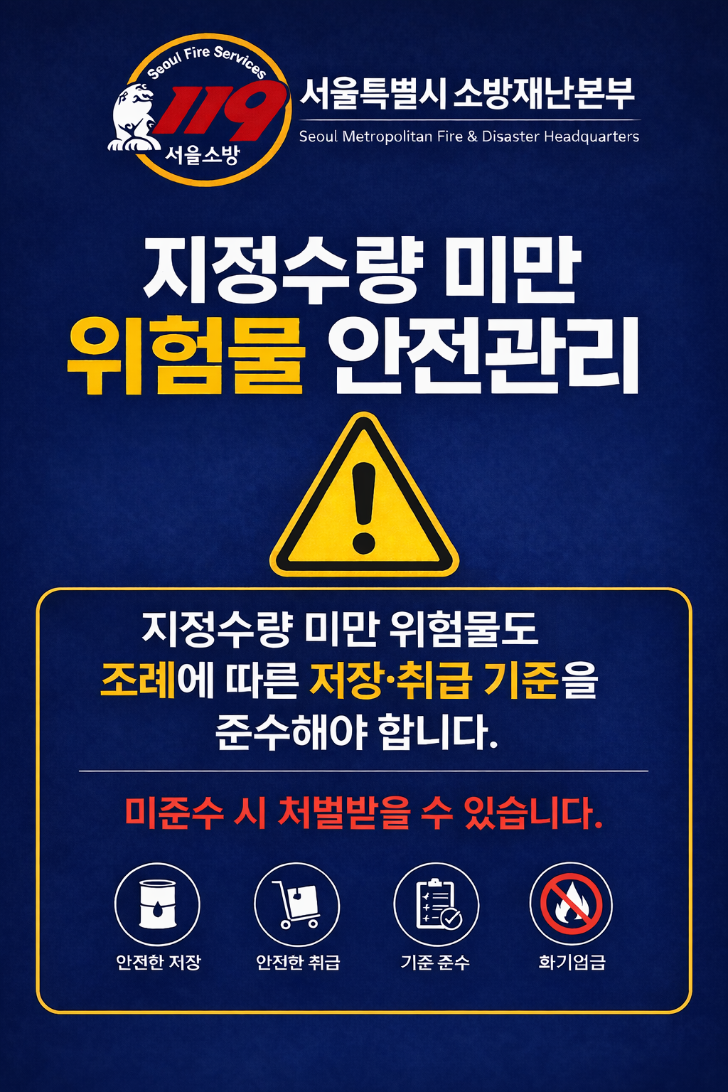 - 지정수량 이상 위험물 보관 시, 법 위반